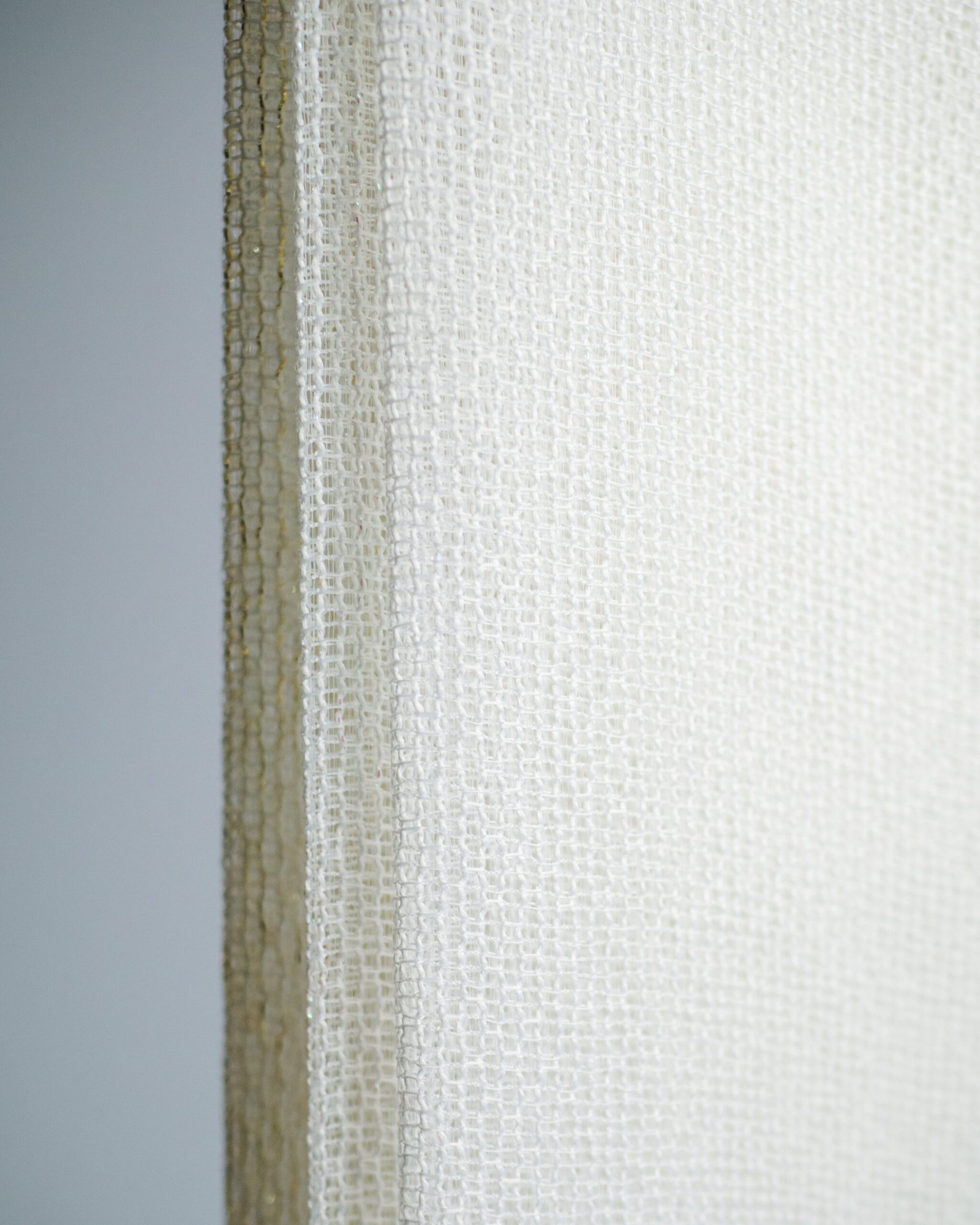 This elegant sheer features a delicately textured weave that diffuses light into a soft, luminous glow. Its refined, airy drape brings a quiet luxury to the space, creating an atmosphere that feels both serene and impeccably tailored.
