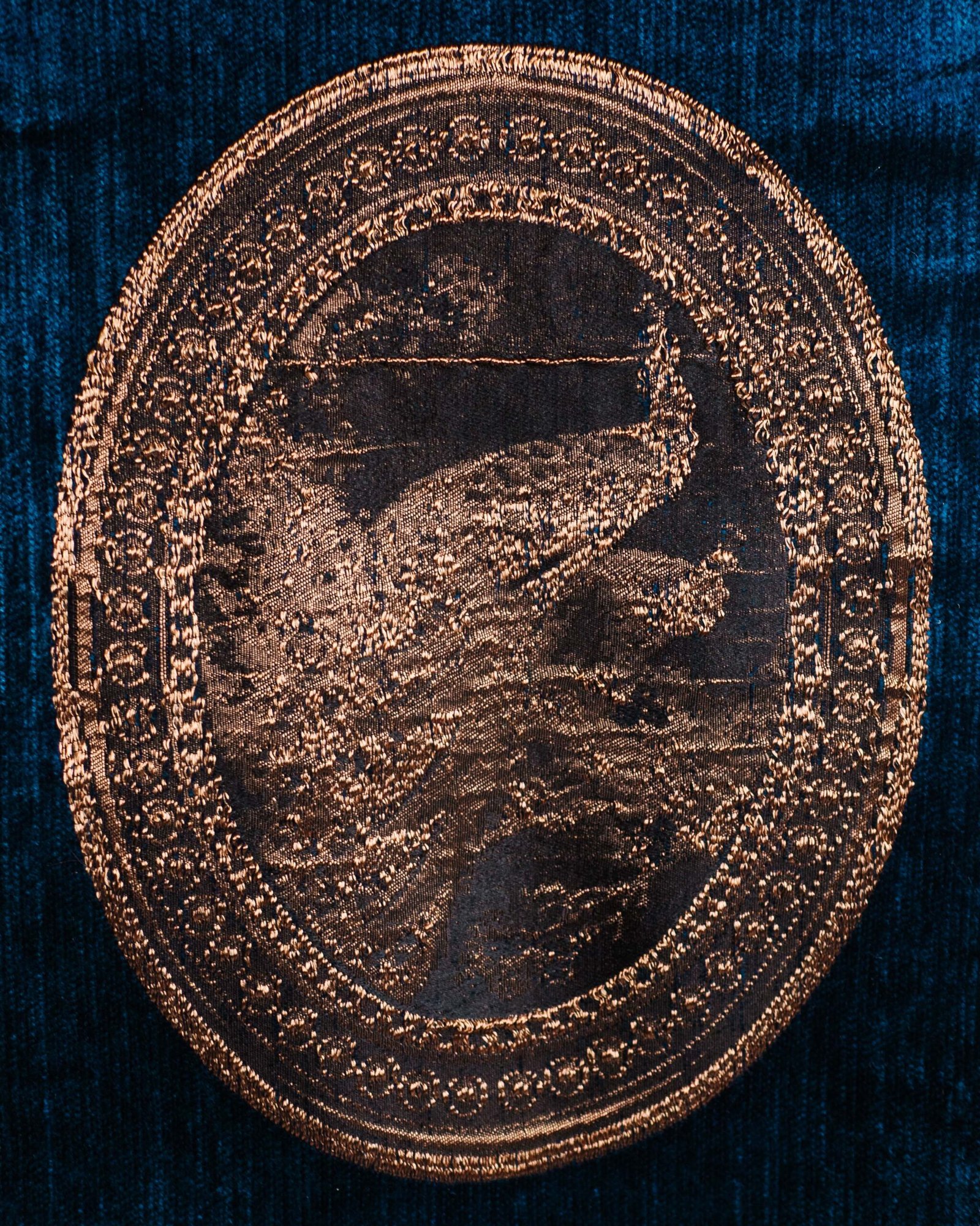 This premium curtain fabric features a deep, velvety base enriched with an elegant medallion motif accented in metallic tones. Its rich texture and dramatic contrast create a luxurious statement, ideal for refined interiors that embrace bold sophistication.