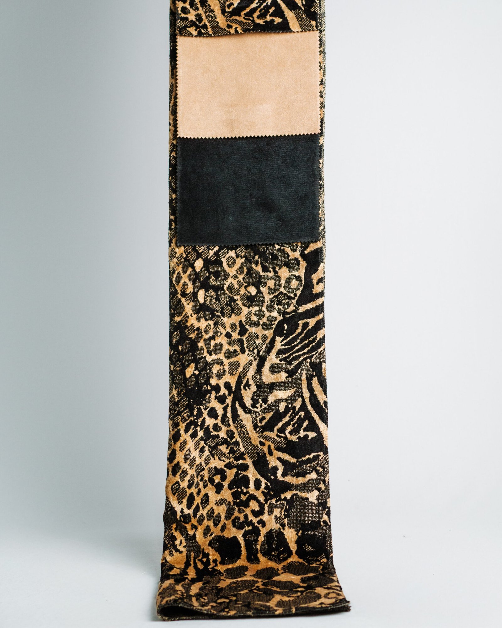 This striking curtain showcases a bold monochrome animal-inspired pattern paired with plush black velvet, delivering a look that is both dramatic and impeccably refined. Its high-contrast design and soft, luxurious texture make it a statement piece for interiors that demand couture-level elegance and modern glamour.