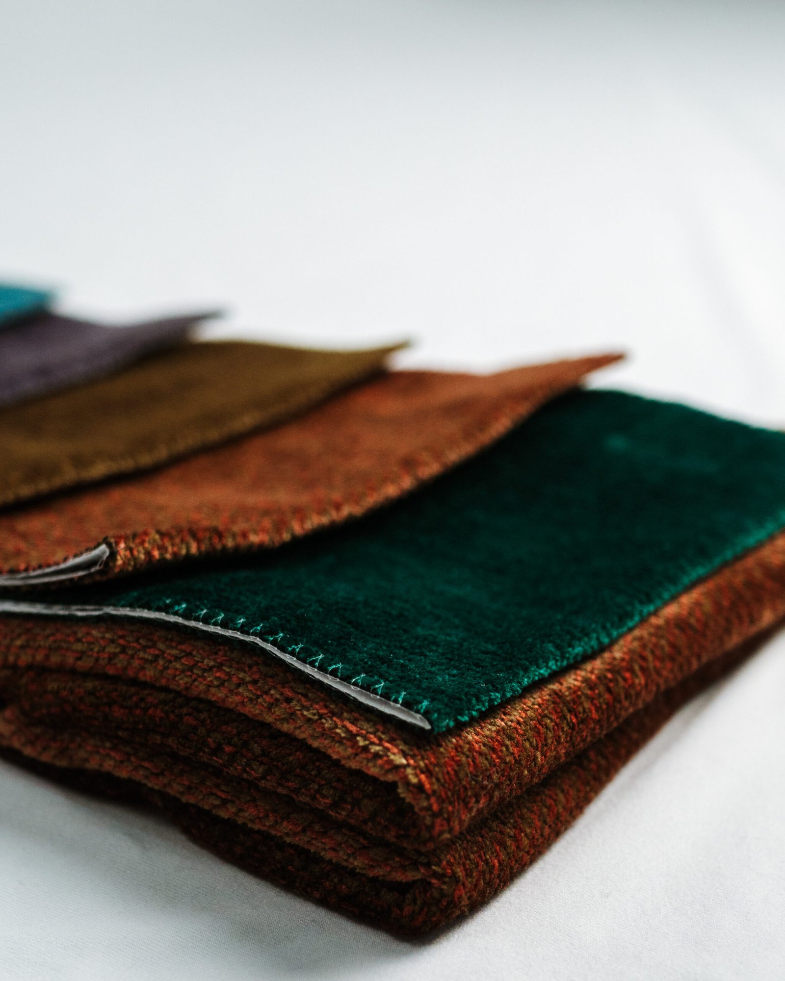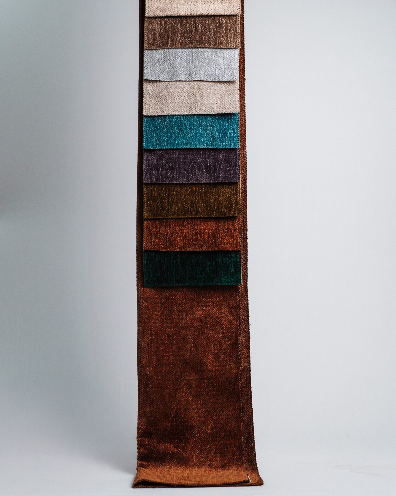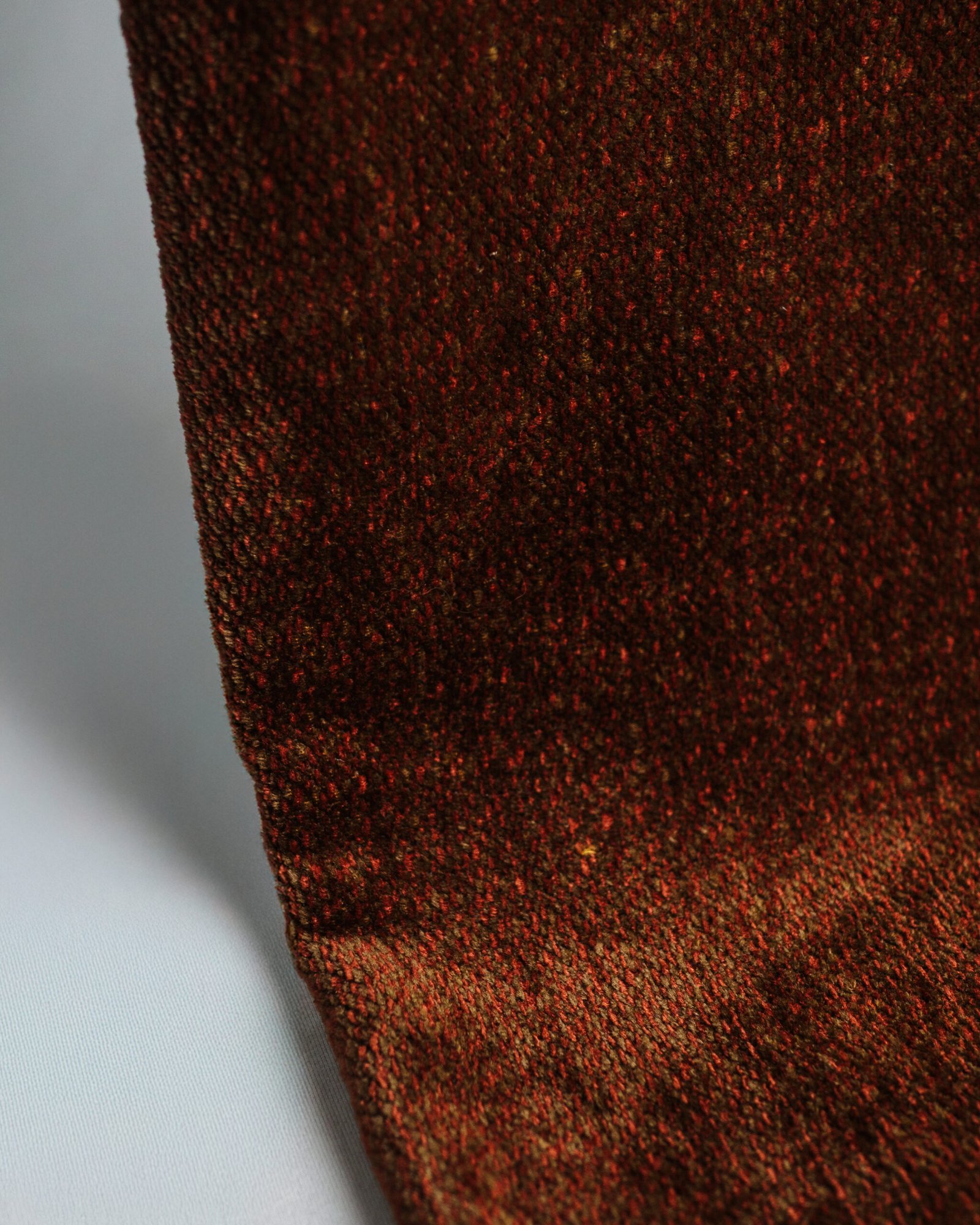 This curtain is crafted from richly textured fabric with a deep, dimensional surface and a refined, velvety sheen. Its sophisticated palette—ranging from warm earthy tones to deep jewel accents—creates a sense of depth and quiet luxury. Elegant and tactile, it brings warmth, richness, and a bespoke character to refined living spaces, bedrooms, or statement interiors.