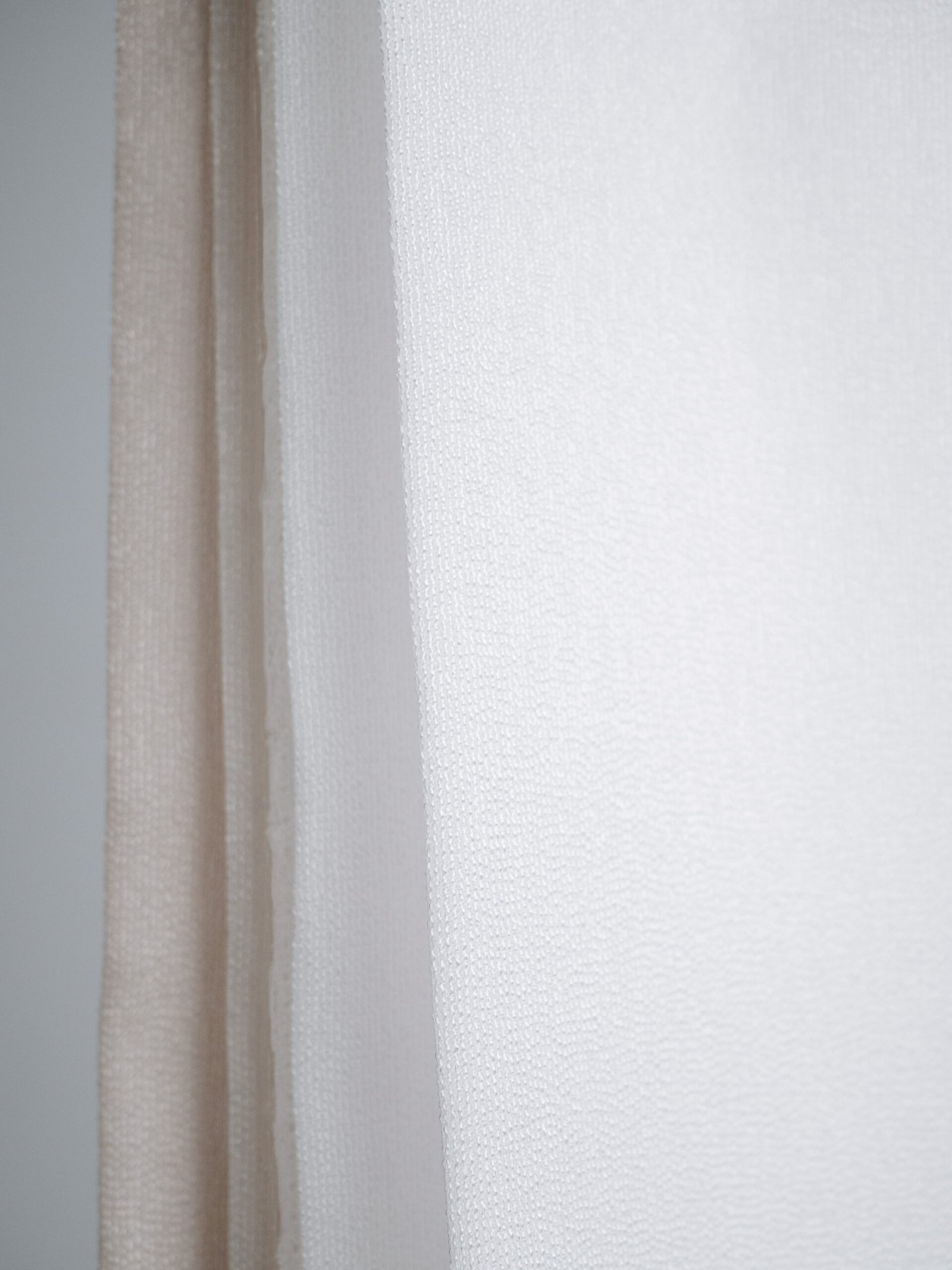 This premium curtain showcases a smooth, refined weave with a soft matte finish, offering a clean and effortlessly sophisticated aesthetic. Its graceful drape and subtle tonal variations create a serene, light-enhancing presence perfect for elevated interiors.