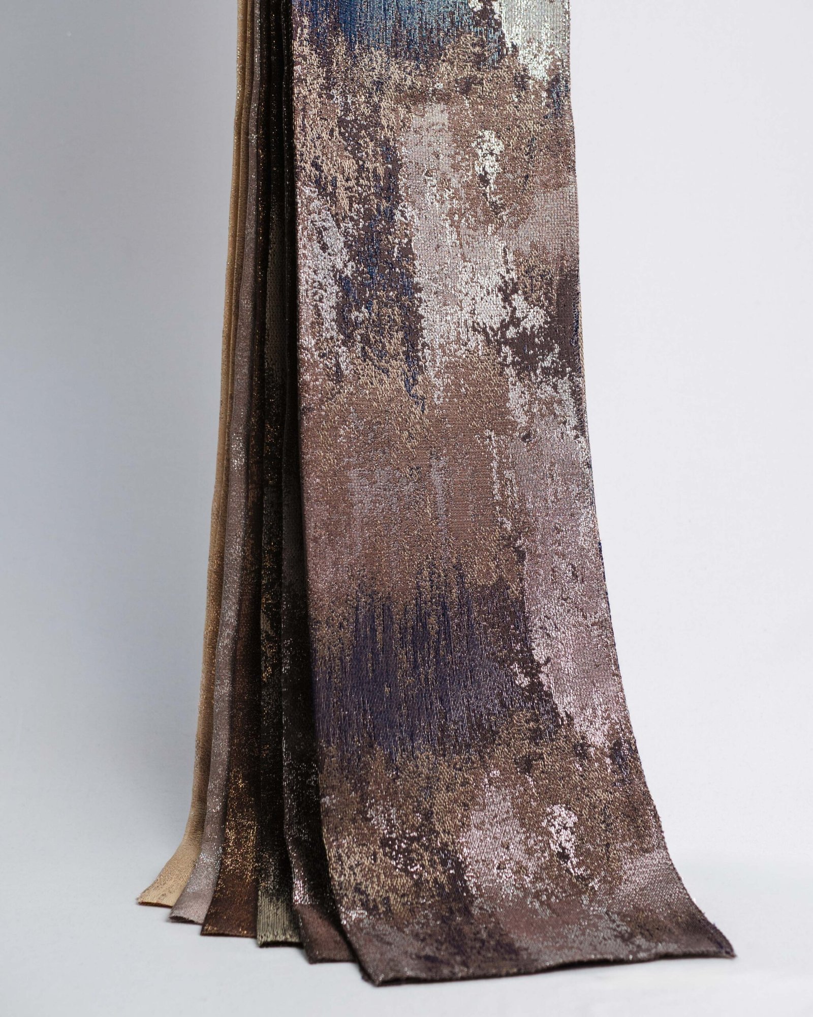 This premium curtain features a luxurious metallic-textured fabric with an abstract distressed pattern that creates depth, shimmer, and a dramatic visual effect. Its rich tones and elegant drape make it a statement piece, perfect for sophisticated, high-end interiors.