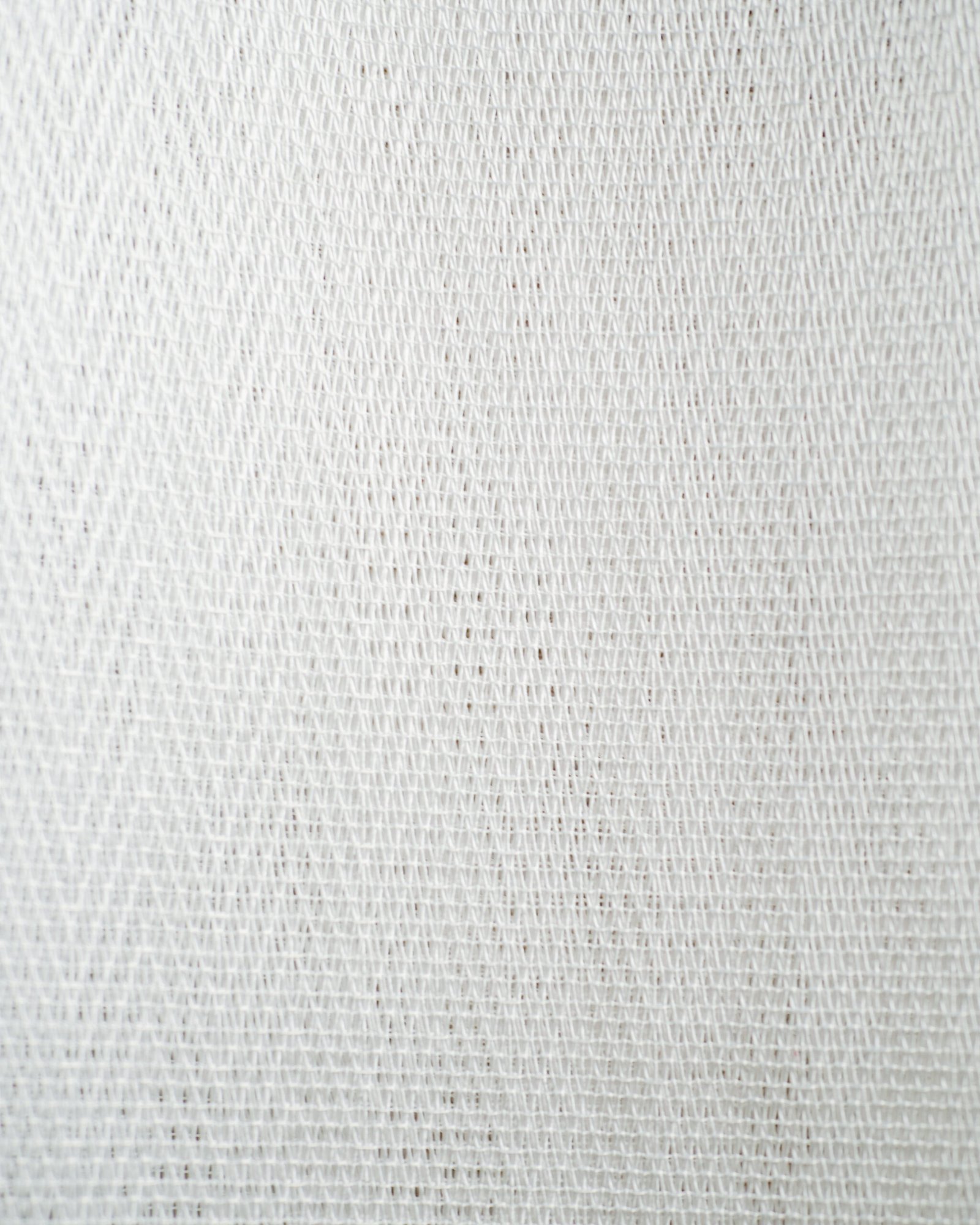 A luxurious sheer curtain in a soft ivory hue, distinguished by its subtle geometric weave that adds depth and refinement. Its airy texture gently diffuses natural light, creating an elegant atmosphere of calm sophistication and contemporary grace.