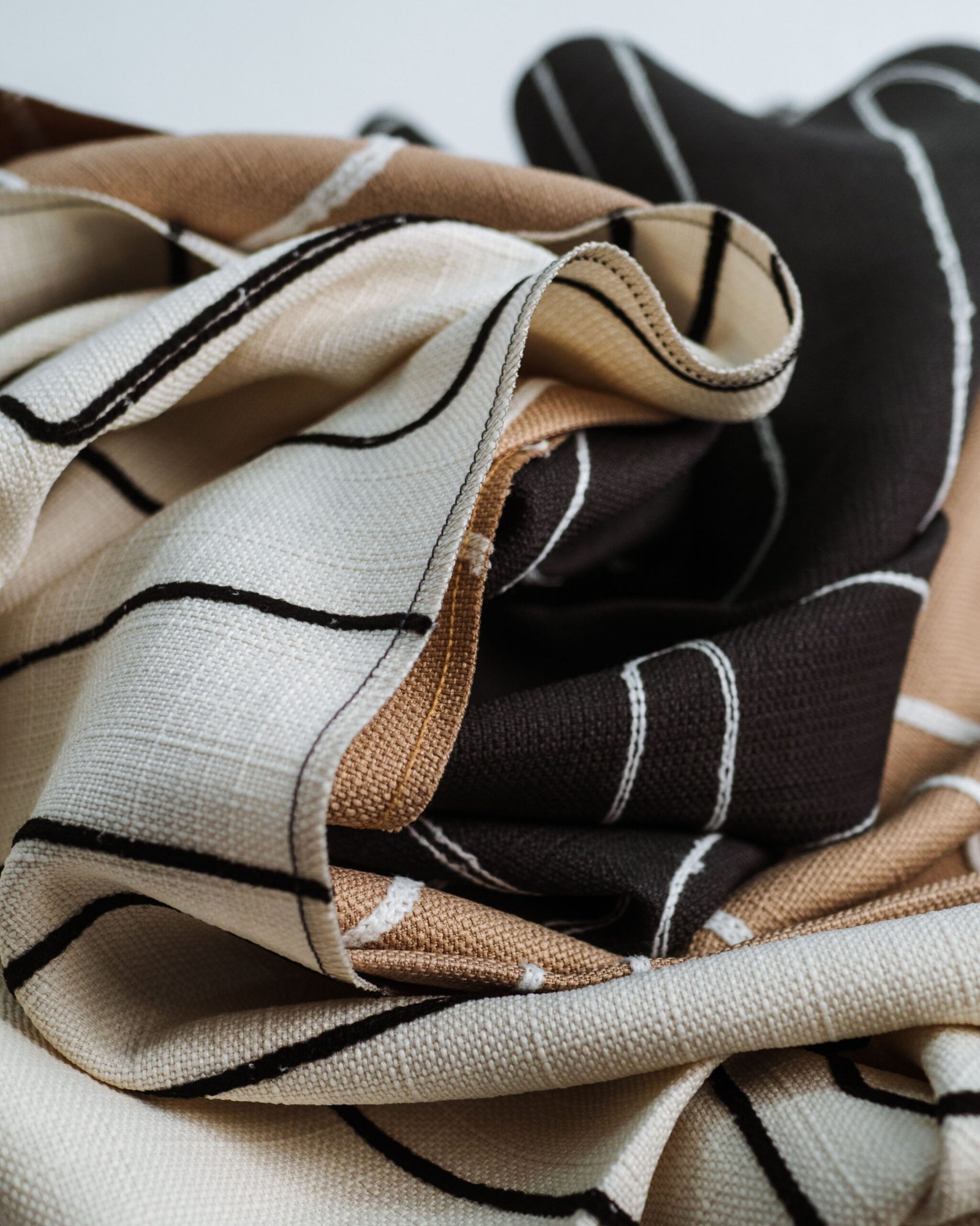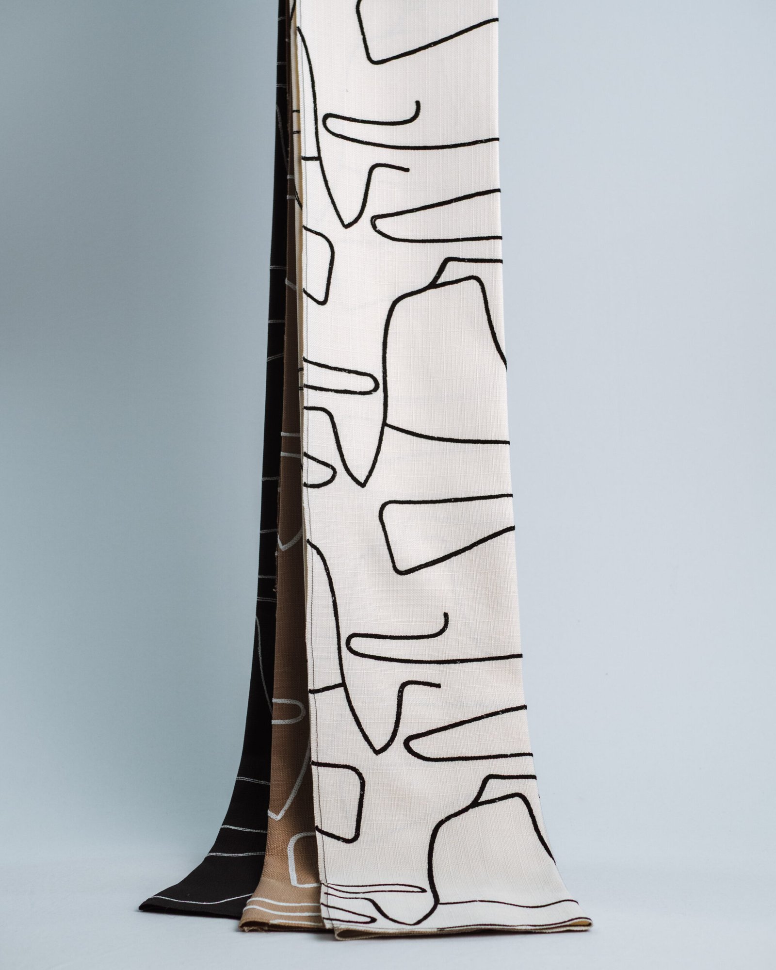 This contemporary curtain features an elegant abstract line pattern on a refined, textured base, creating a striking balance between art and minimalism. Its clean contrast and couture-style finish bring a sophisticated, gallery-like presence to modern interiors.
