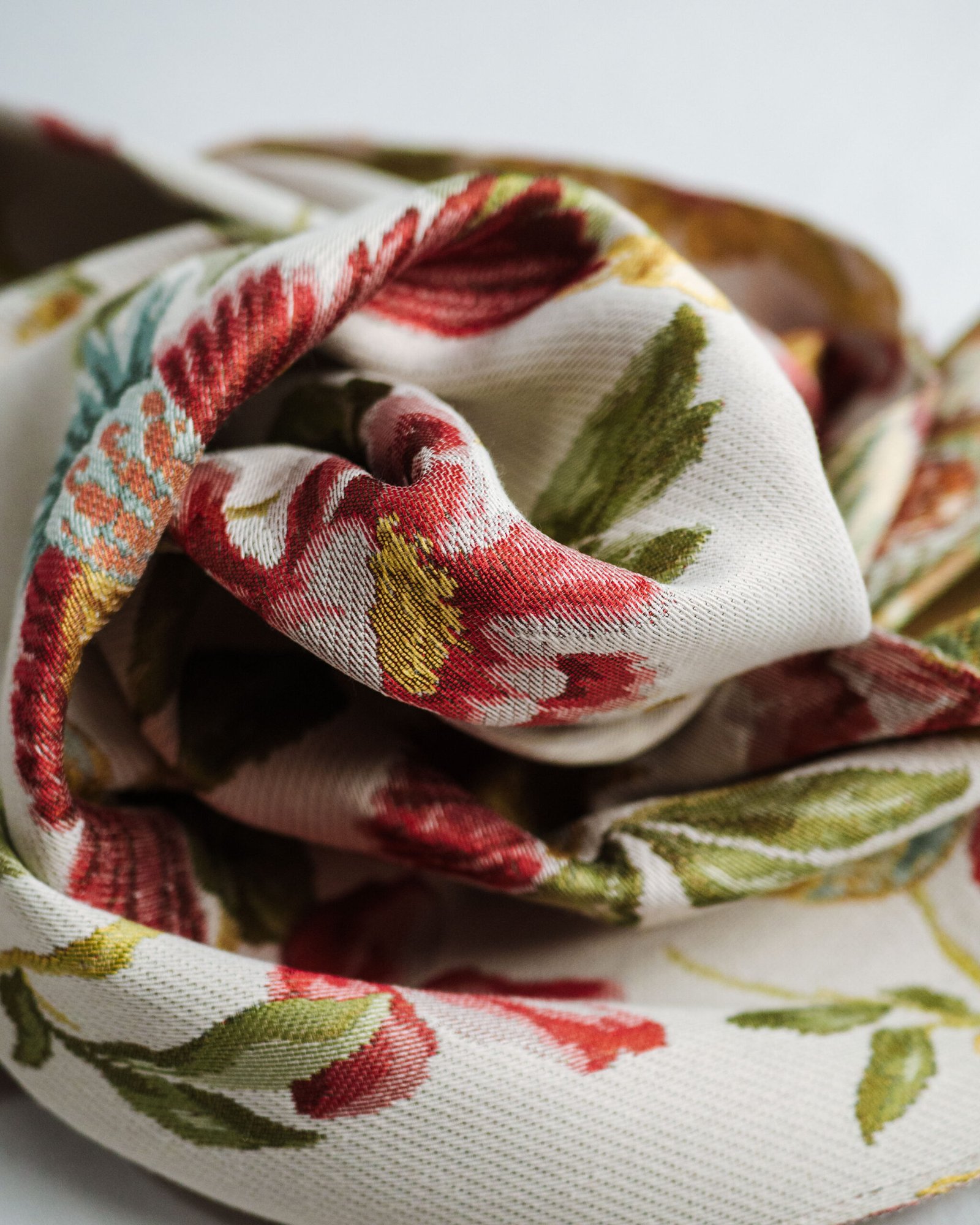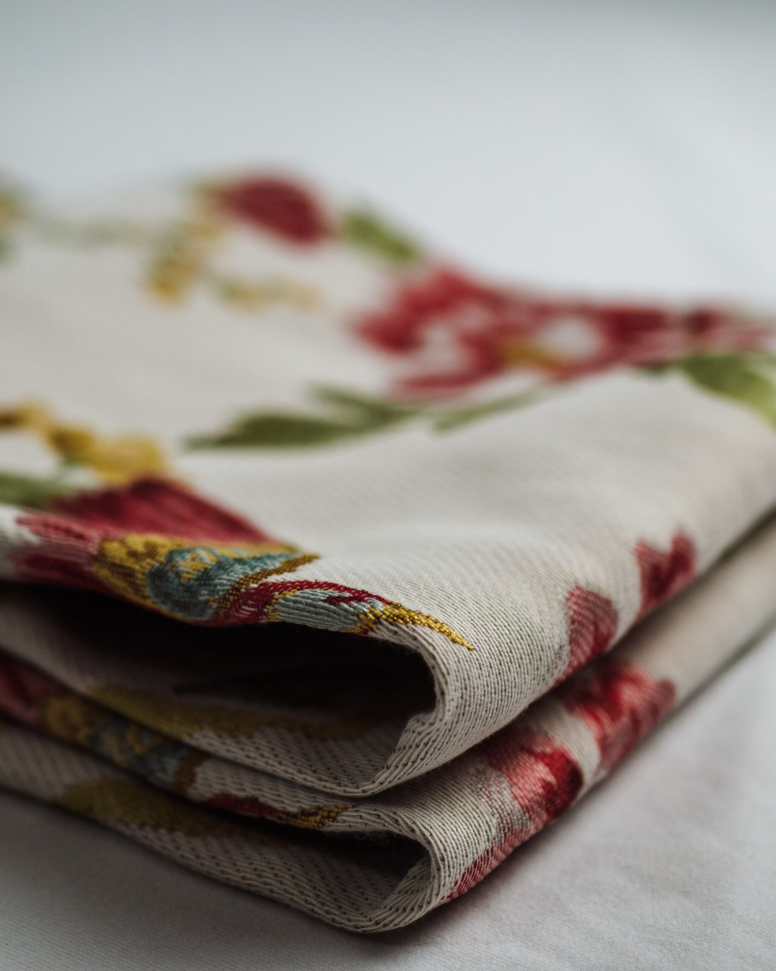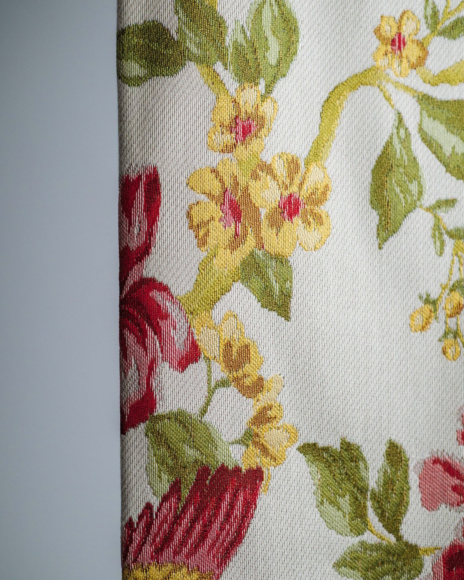 This curtain features a graceful floral composition set against a soft, light background, where richly detailed blossoms and foliage unfold in warm, harmonious tones. The refined weave and painterly pattern evoke timeless charm and effortless elegance, making it a beautiful addition to sophisticated living spaces, bedrooms, or boutique-style interiors.