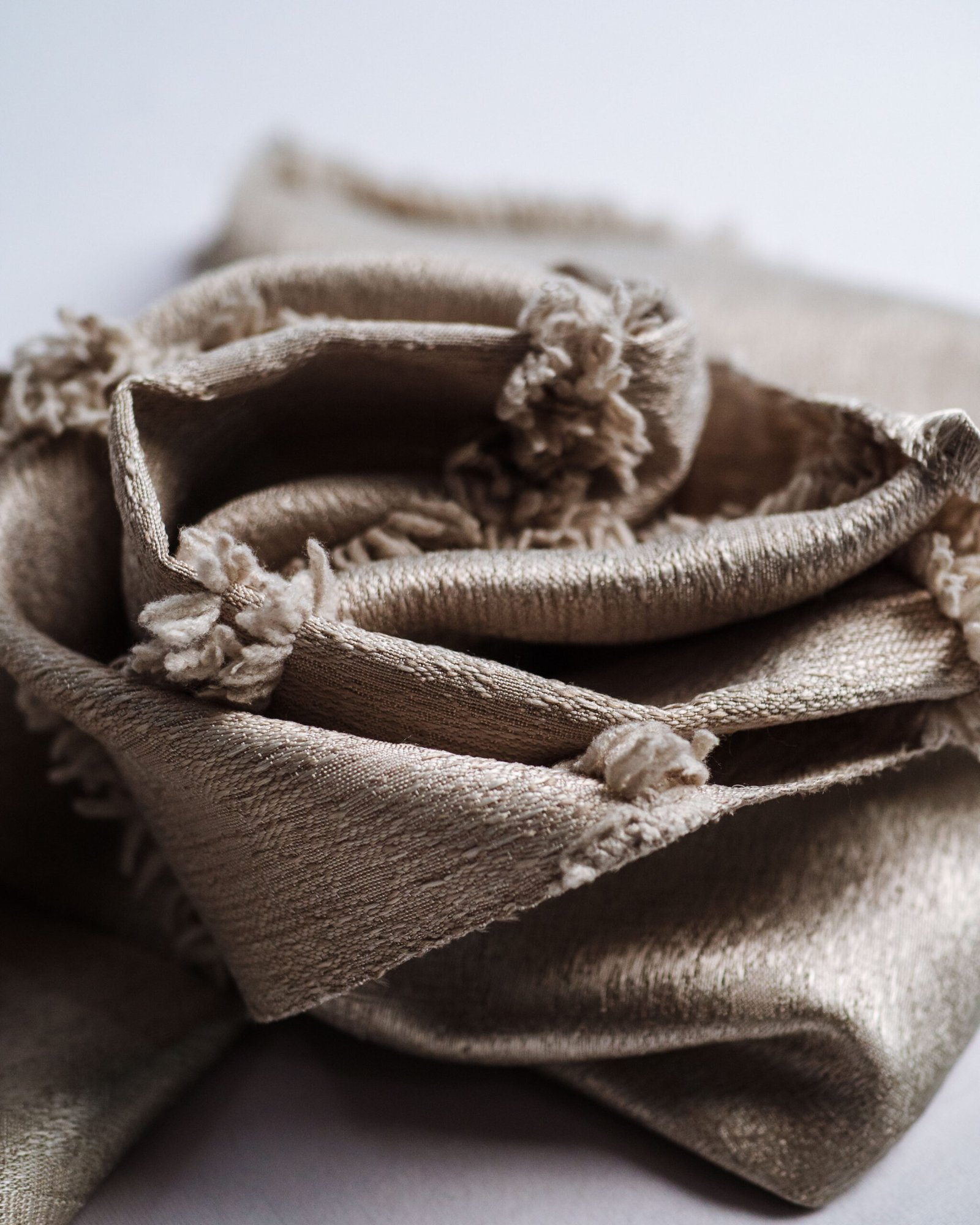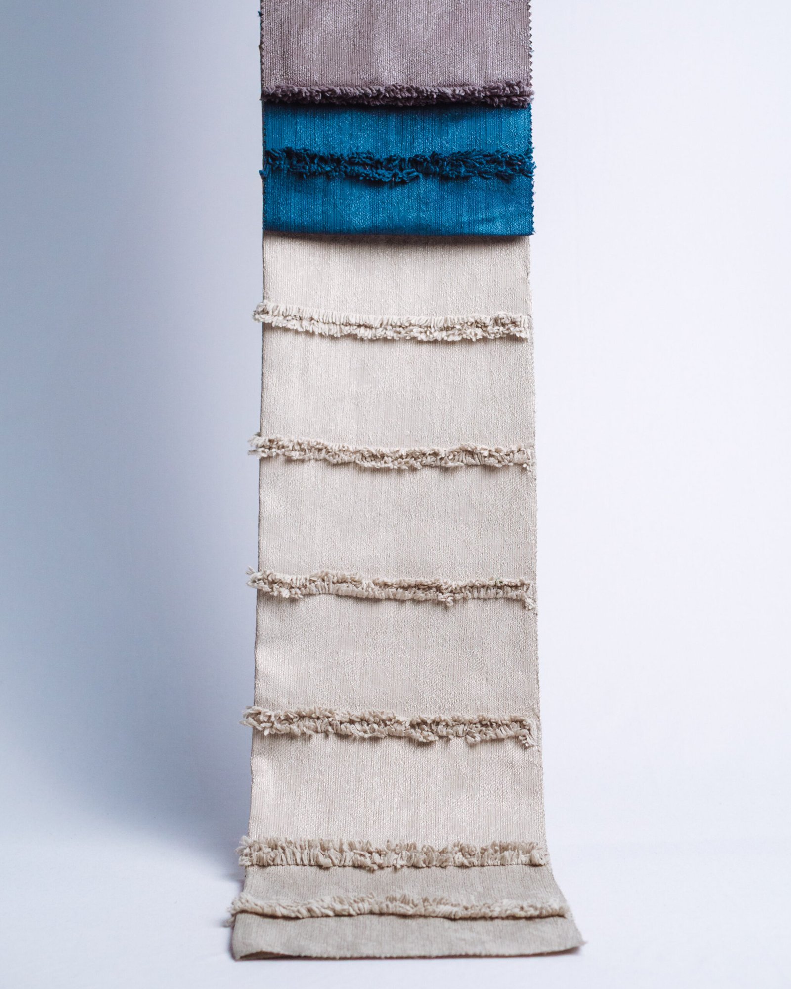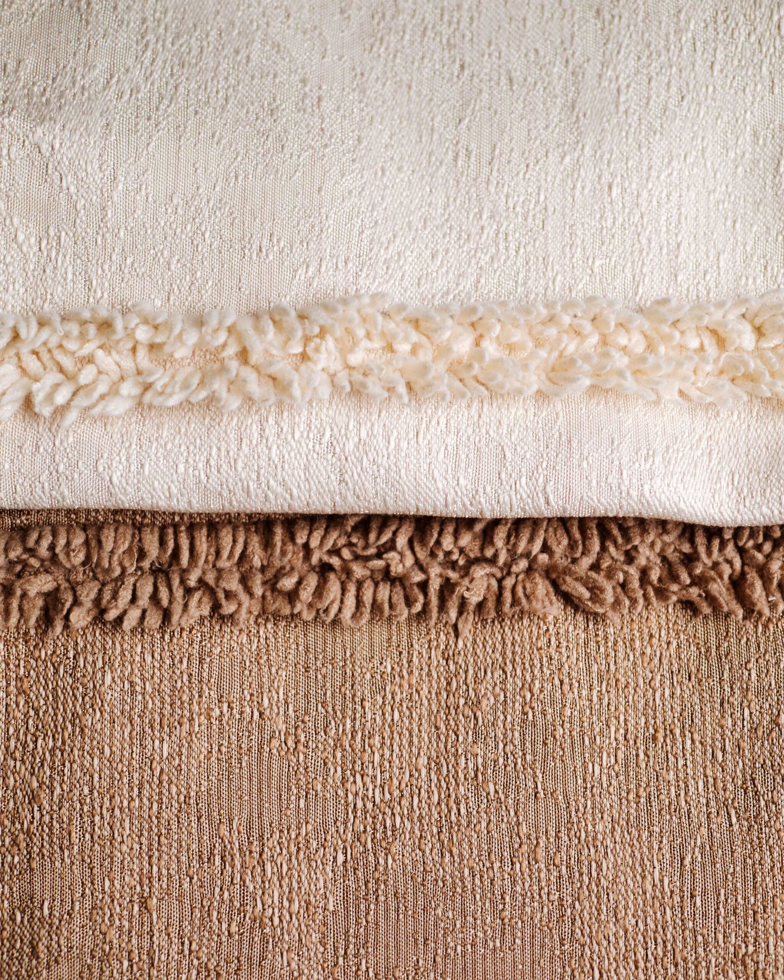 This premium curtain fabric showcases an elegant woven texture with refined horizontal tufted detailing, creating depth and a subtle handcrafted appeal. Its soft, neutral tones and fluid drape bring a sense of quiet luxury, perfectly suited for sophisticated contemporary interiors.