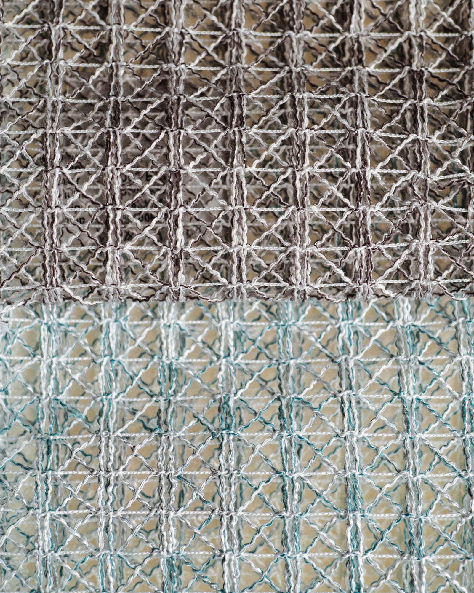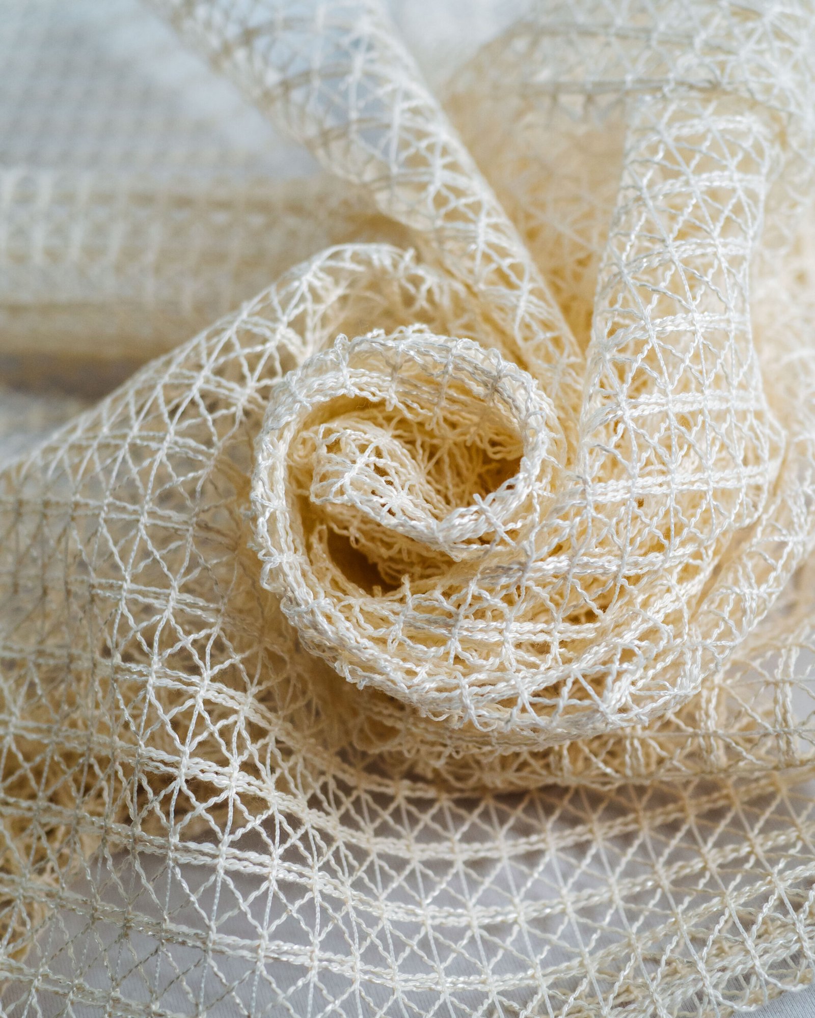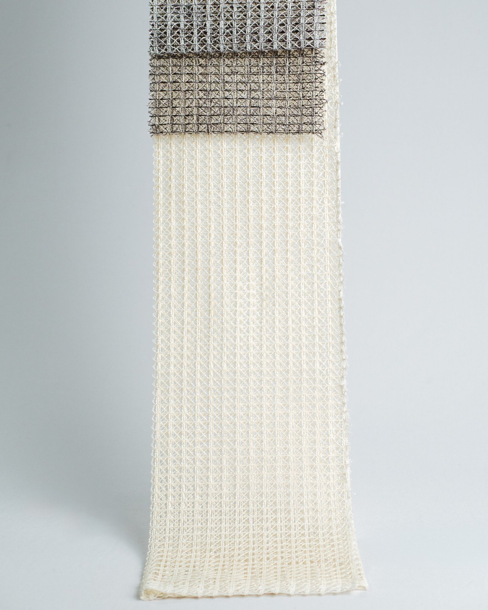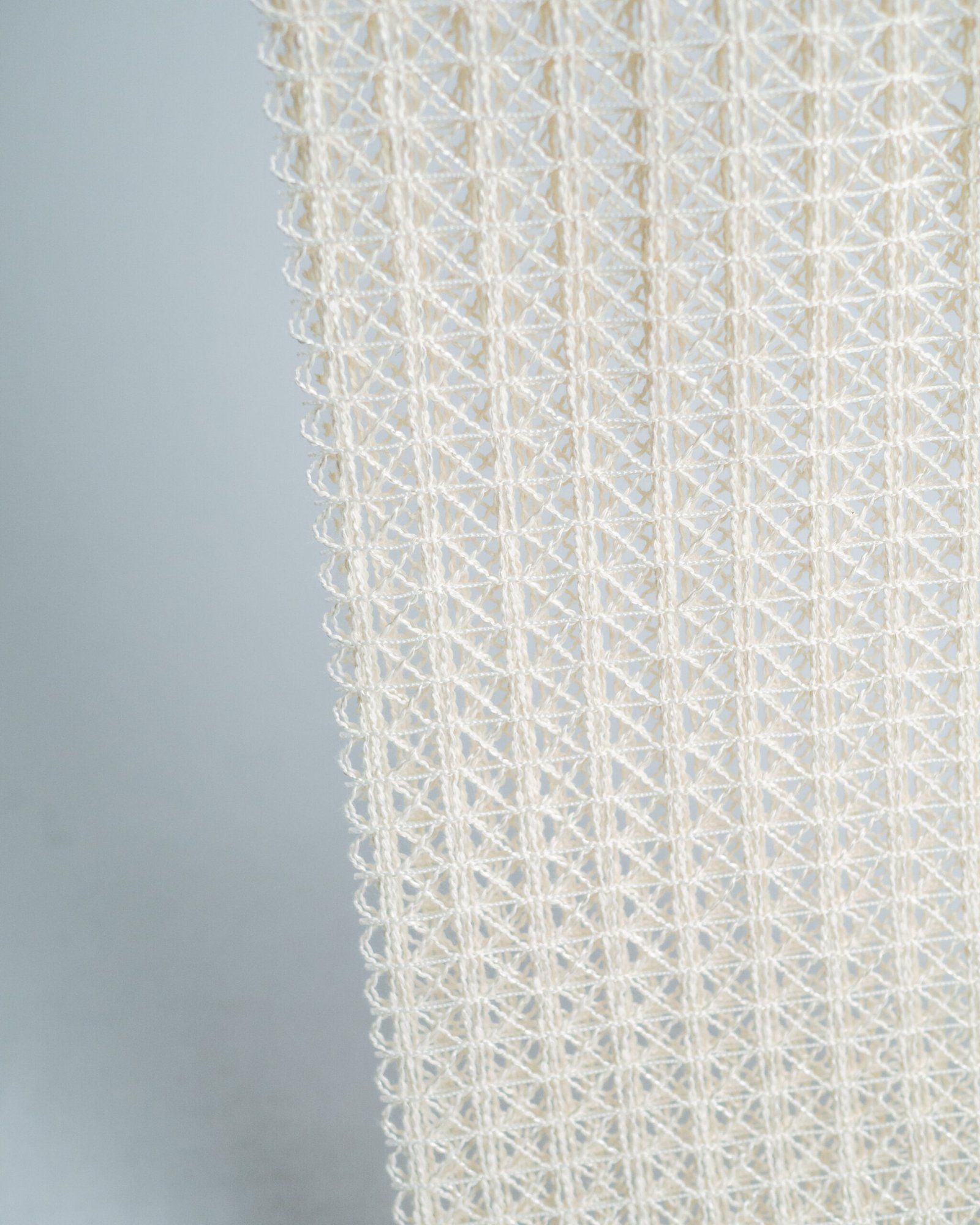 An exquisite curtain crafted with a delicate geometric weave that creates a refined play of texture and light. Its airy, architectural pattern softly filters daylight while adding a modern, sculptural elegance to sophisticated interiors.