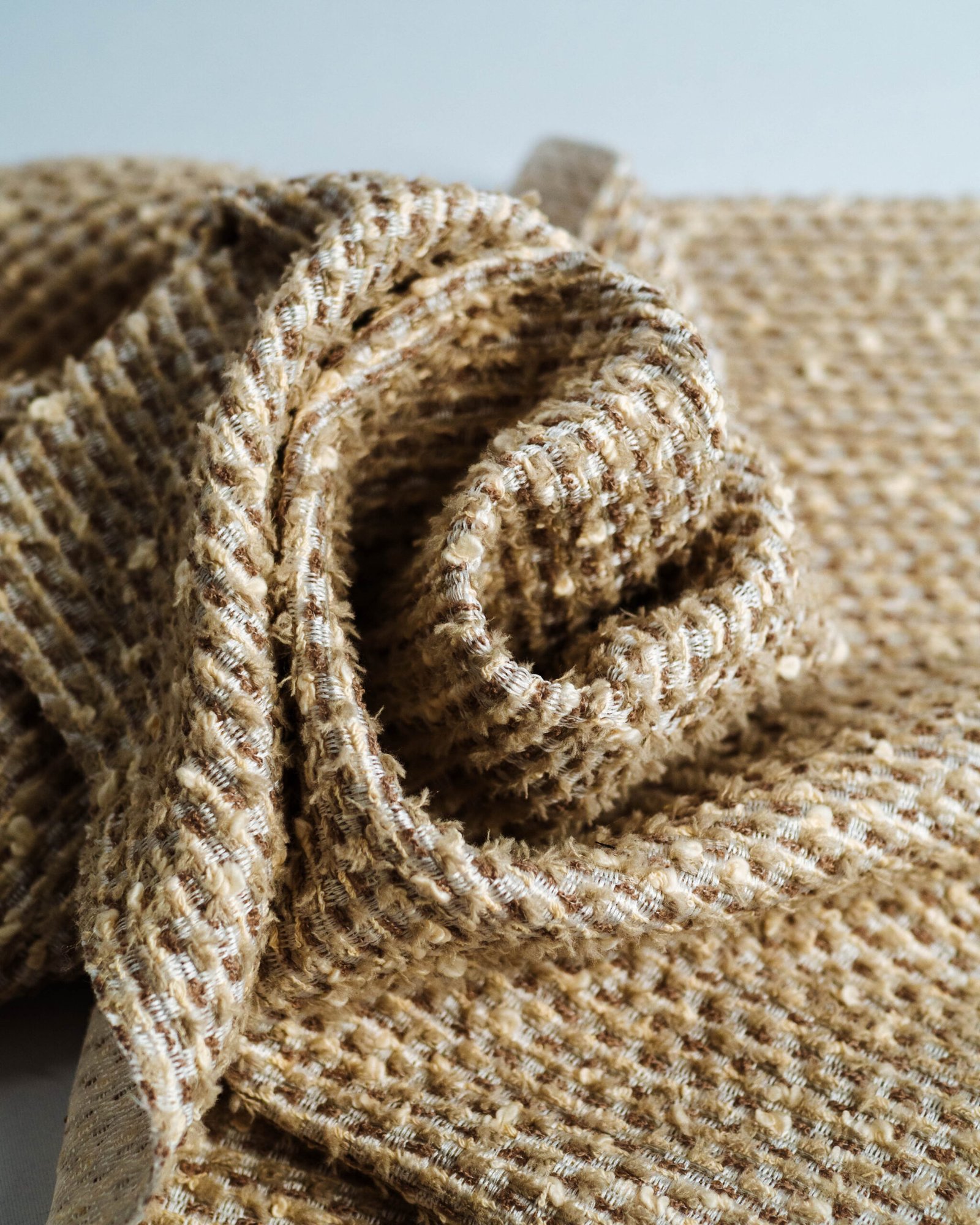 This curtain is crafted from a richly woven, linen-inspired texture that offers a refined balance of structure and softness. Its layered neutral and accent tones add subtle depth, delivering understated luxury and a timeless, tailored look for elegant interiors.